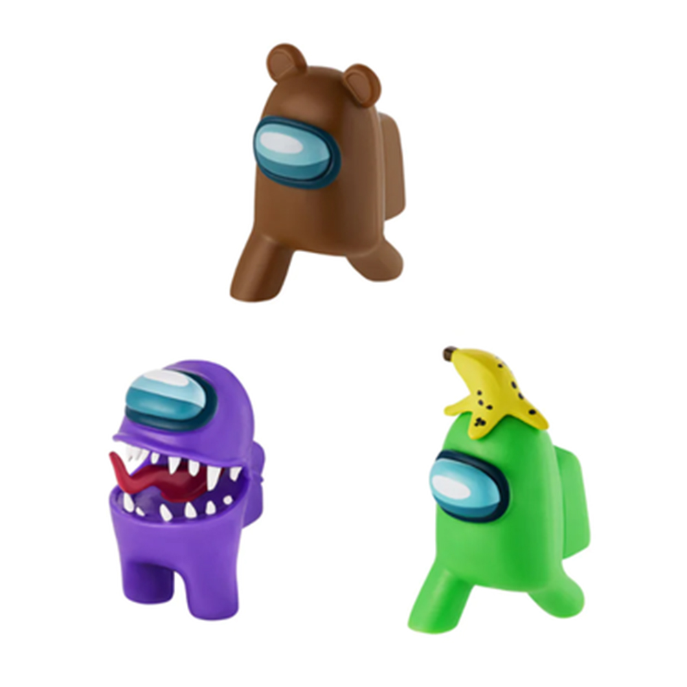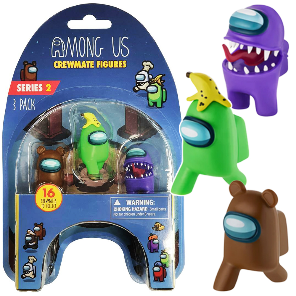 Figurki z postaciami Among Us – zestaw 3-pack. Figurki w zestawie wiernie odwzorowują charakterystyczne postacie z gry, zachowując szczegóły i detale, co sprawia, że są doskonałą reprezentacją wirtualnych postaci.