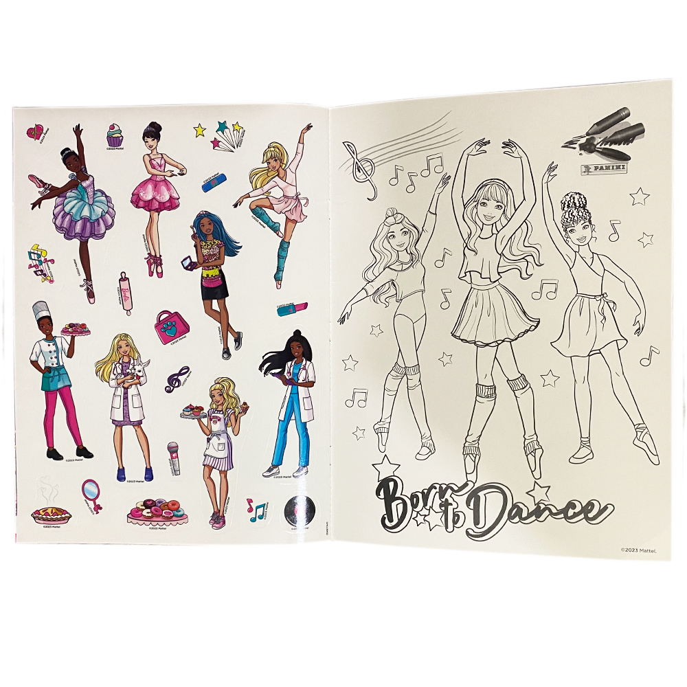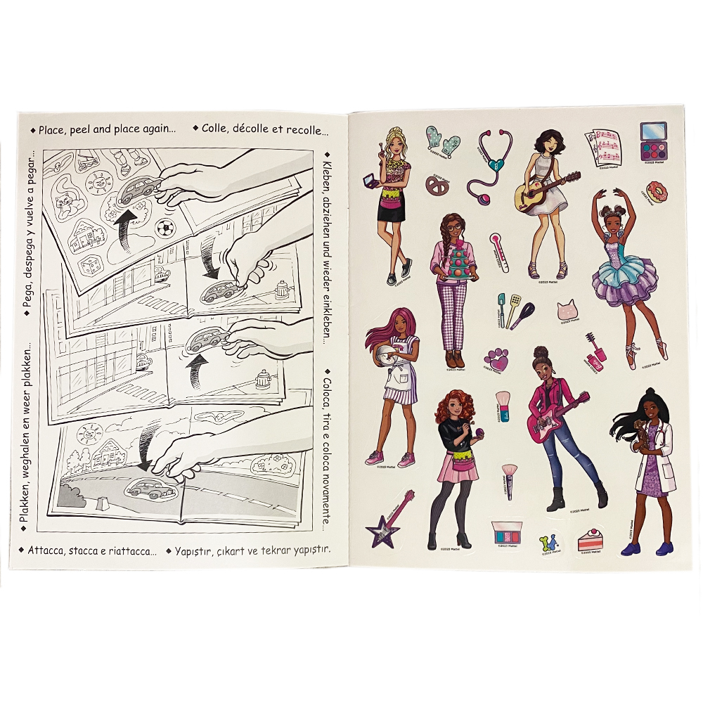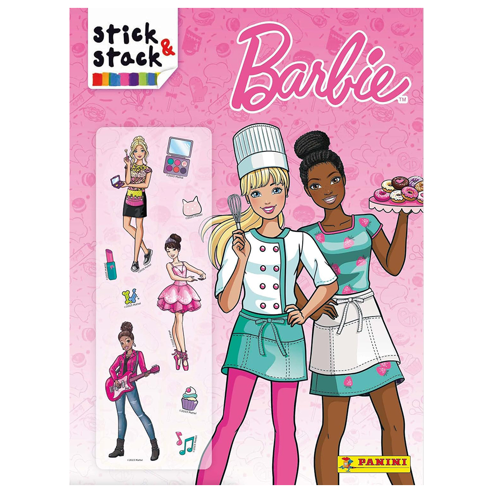 Książeczka kolekcjonerska, która pozwala dzieciom na tworzenie własnych scen z udziałem Barbie i jej przyjaciół. Album zawiera specjalne strony, na których można umieszczać wielokrotnego użytku naklejki, umożliwiając tworzenie i modyfikowanie różnych scenariuszy oraz rozwijanie kreatywności. Dzięki temu dzieci mogą bawić się, tworząc własne historie i aranżacje z ulubionymi postaciami.
