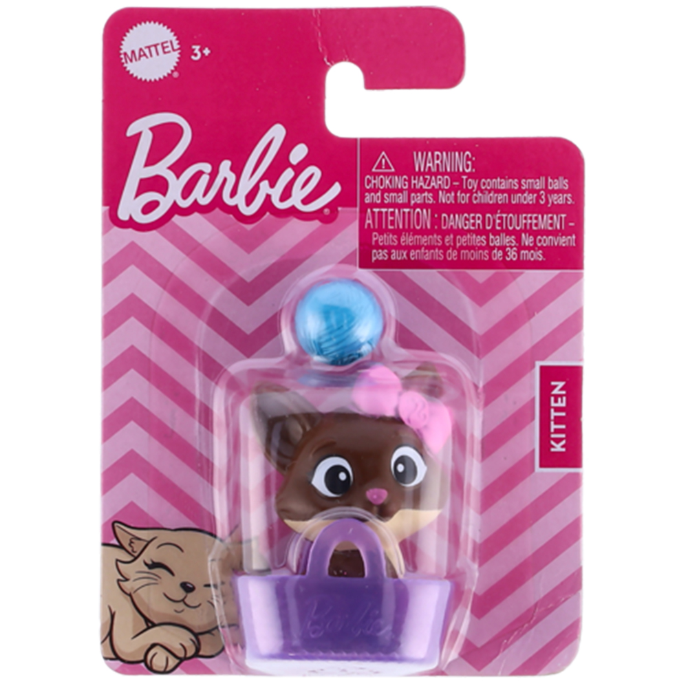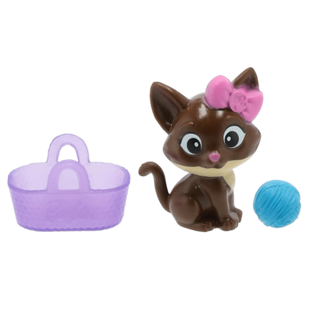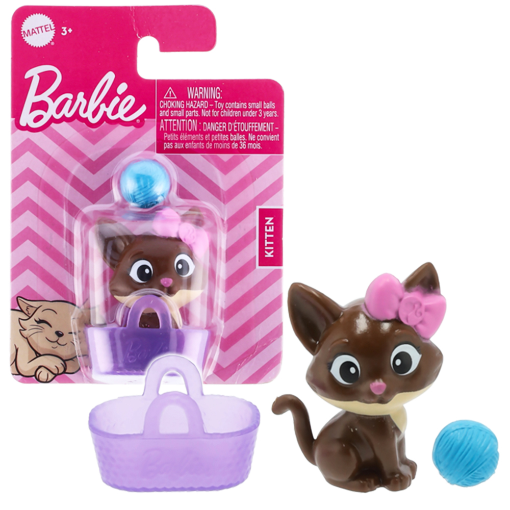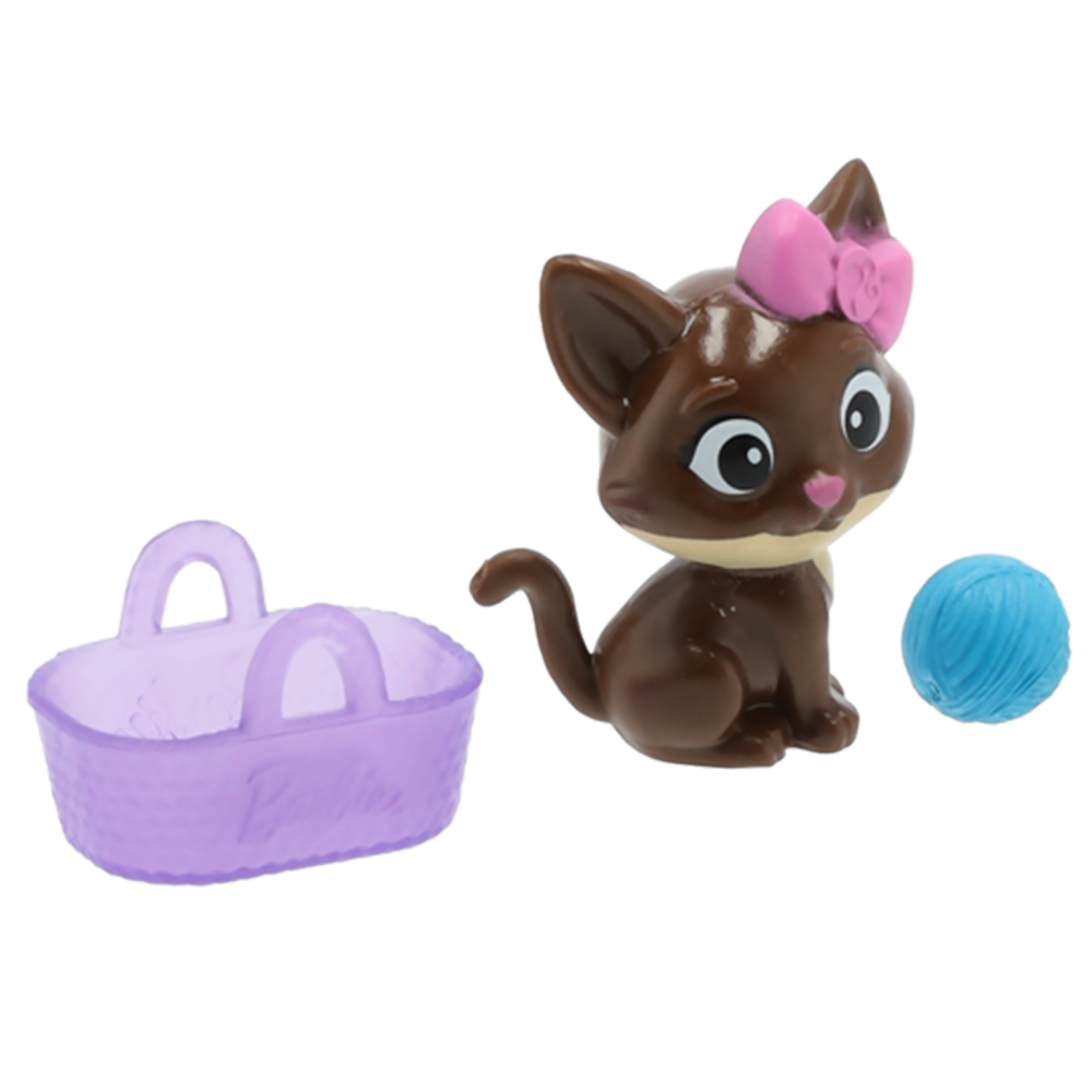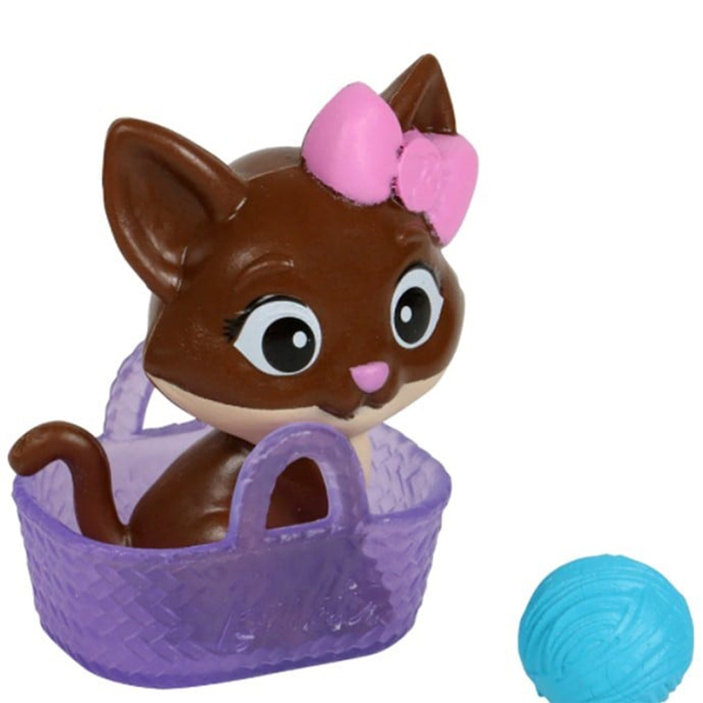 Zestaw zawiera figurkę brązowego kotka, włóczkę i koszyczek/torebkę dla kotka.