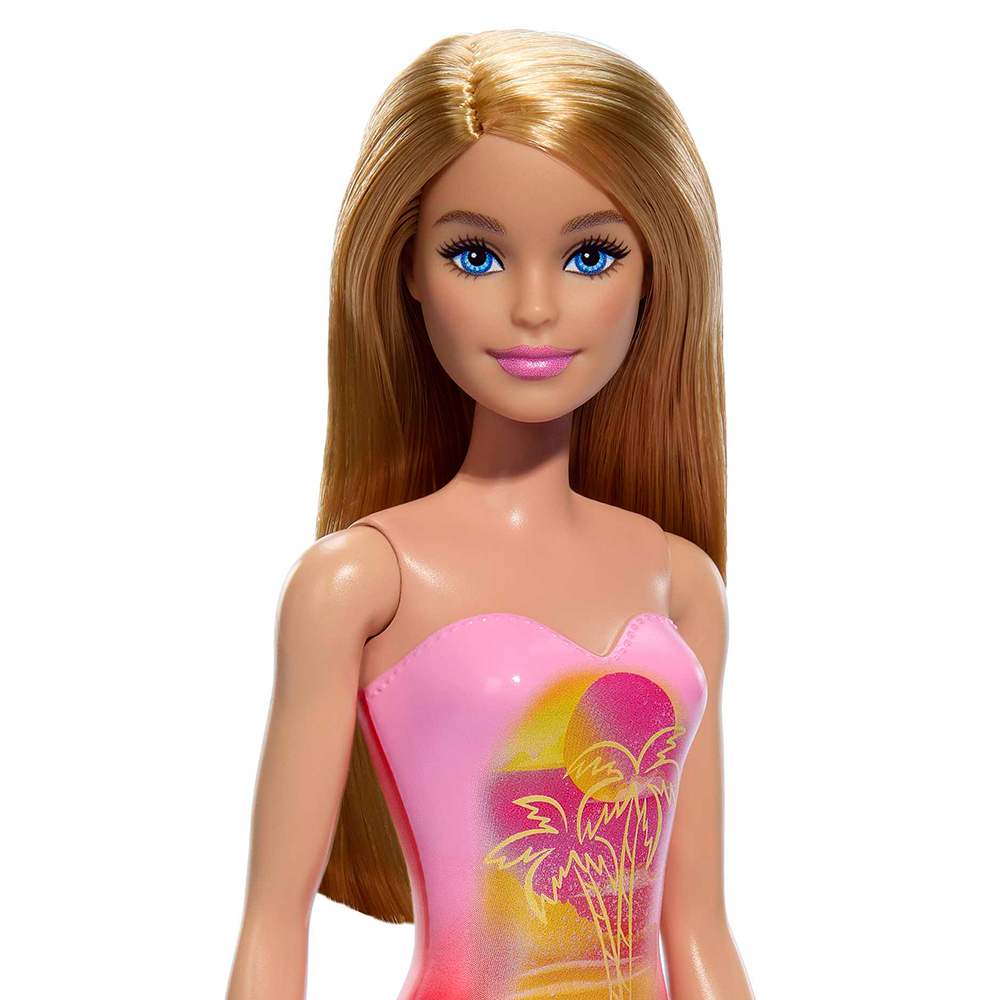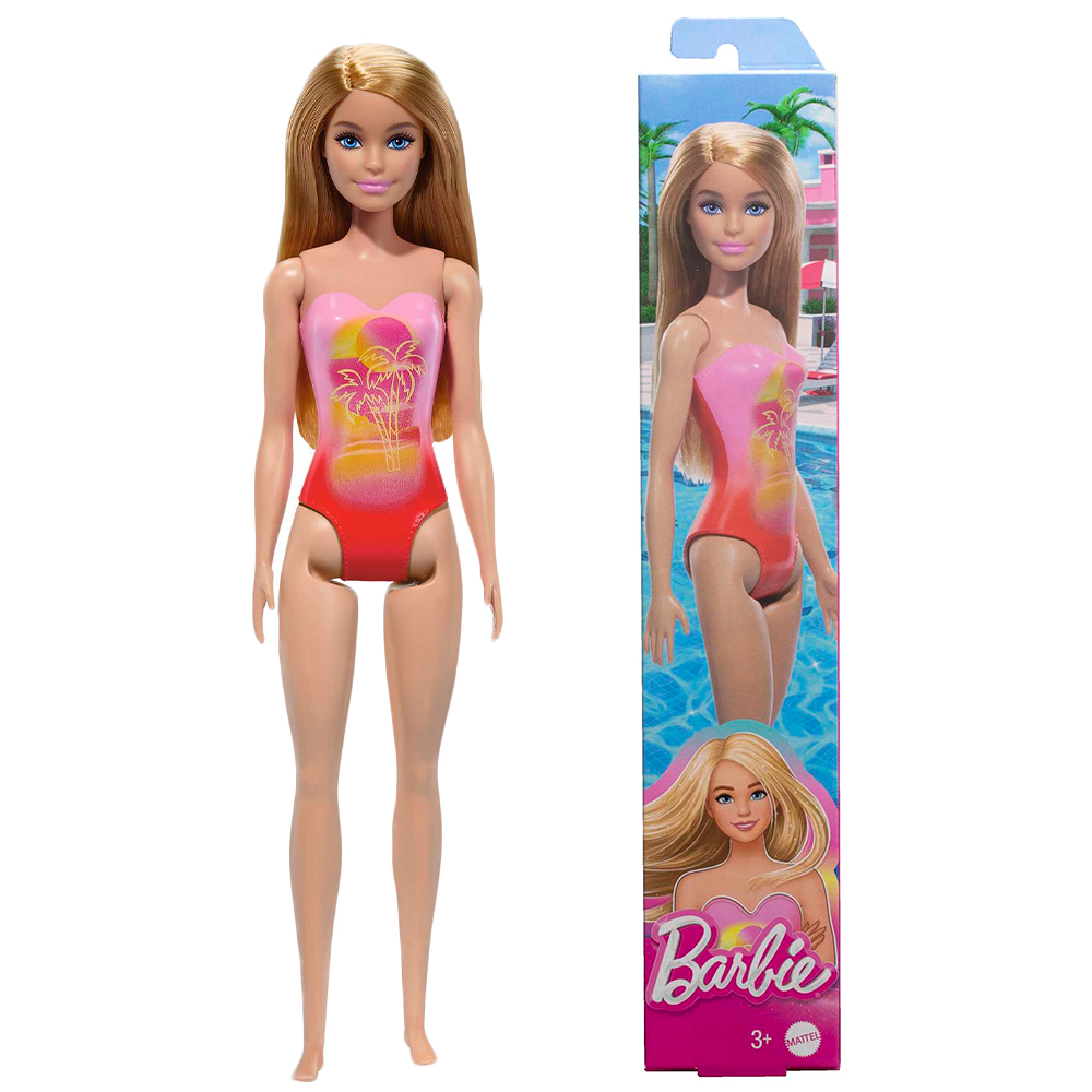 Lalka Barbie ma długie blond włosy i różowo-czerwony kostium kąpielowy (kostium nie jest zdejmowany). Zabawka ma ruchome ręce i nogi. Lalka nie stoi samodzielnie.