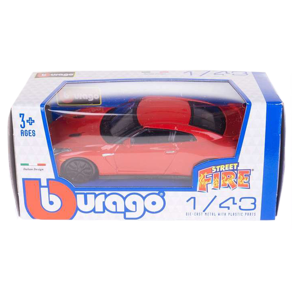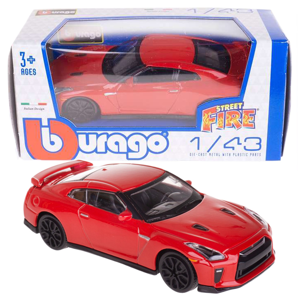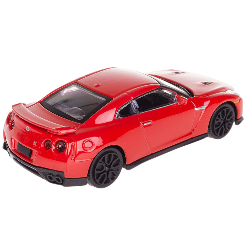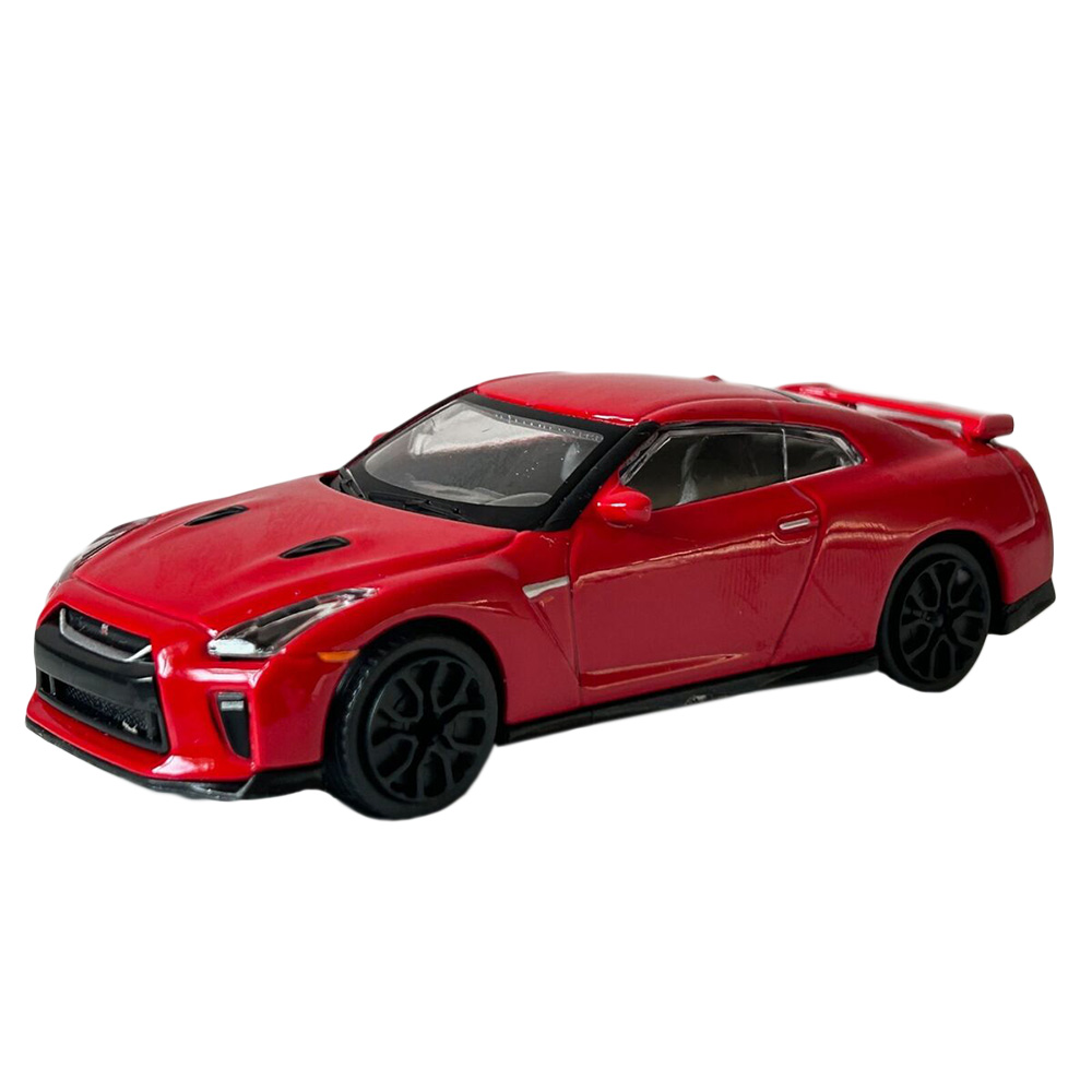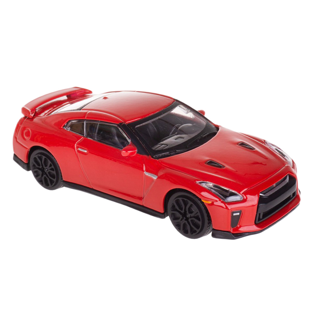 Model samochodu Nissan GT-R 2017. Pojazd posiada metalową karoserię i plastikowe elementy (szyby, koła, podwozie). Auto w skali 1:43, wykonane z dbałością o szczegóły.