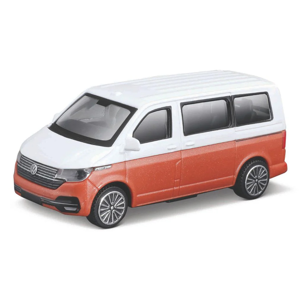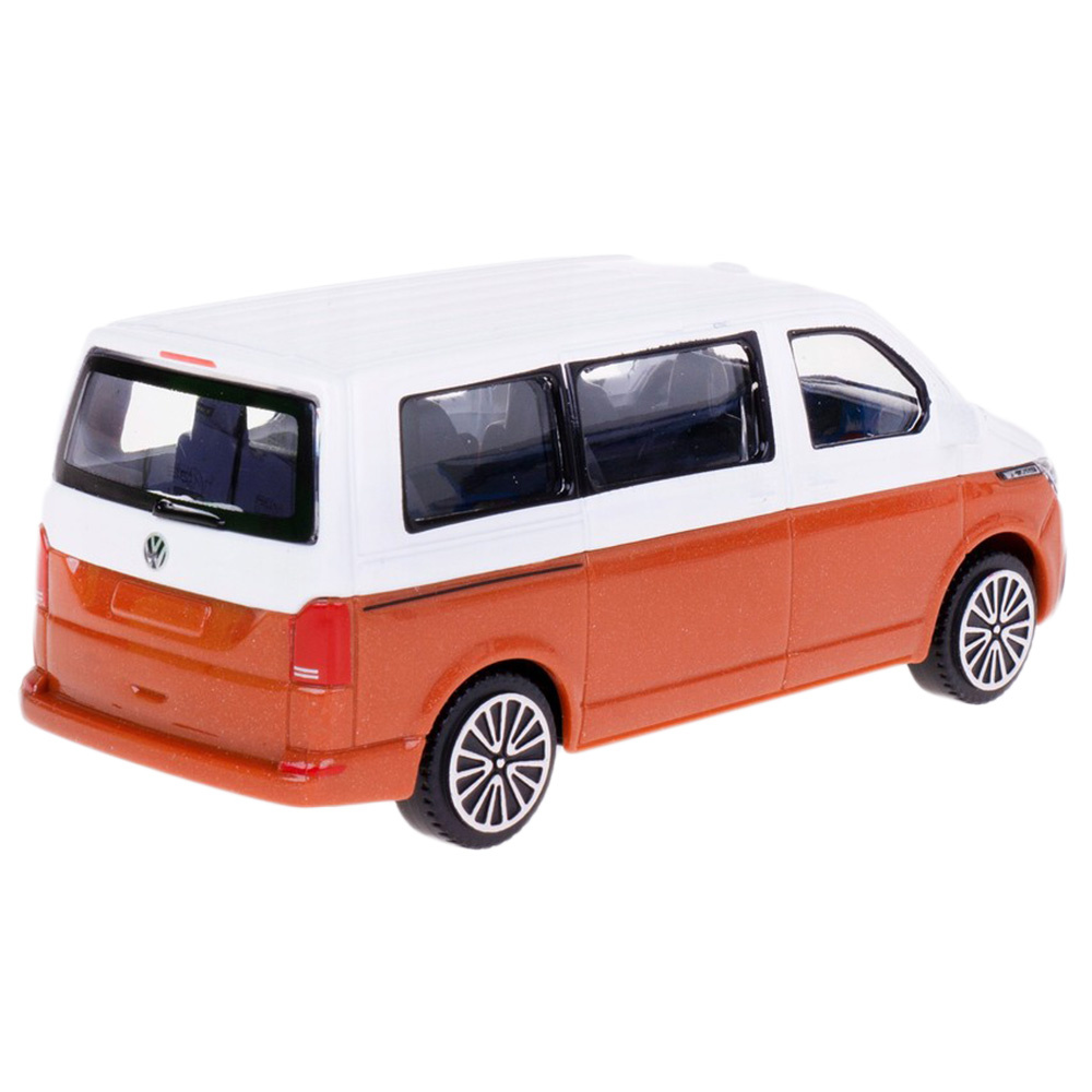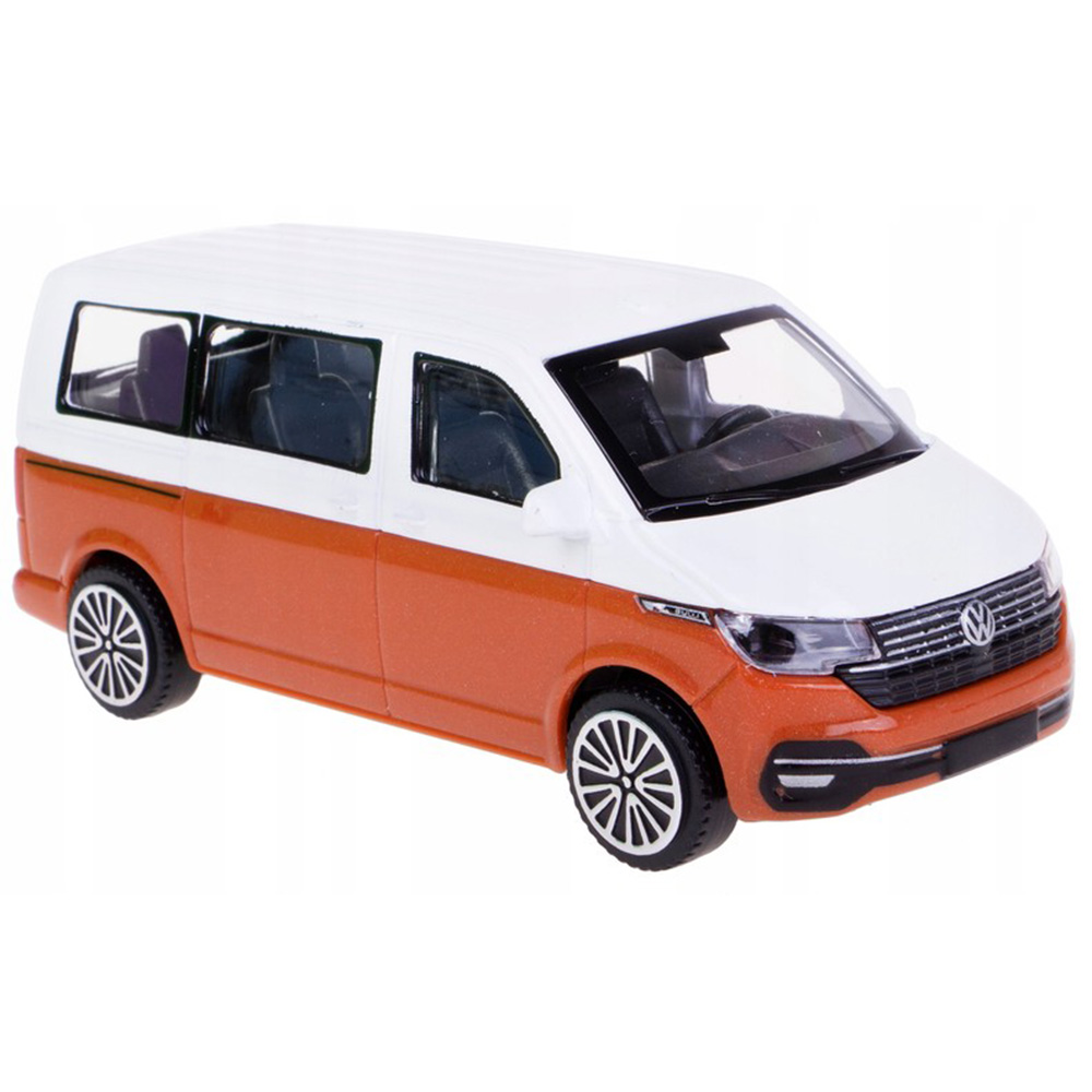 Model samochodu Volkswagen T6.1 Transporter 2020. Pojazd posiada metalową karoserię i plastikowe elementy (szyby, koła, podwozie). Auto w skali 1:43, wykonane z dbałością o szczegóły.