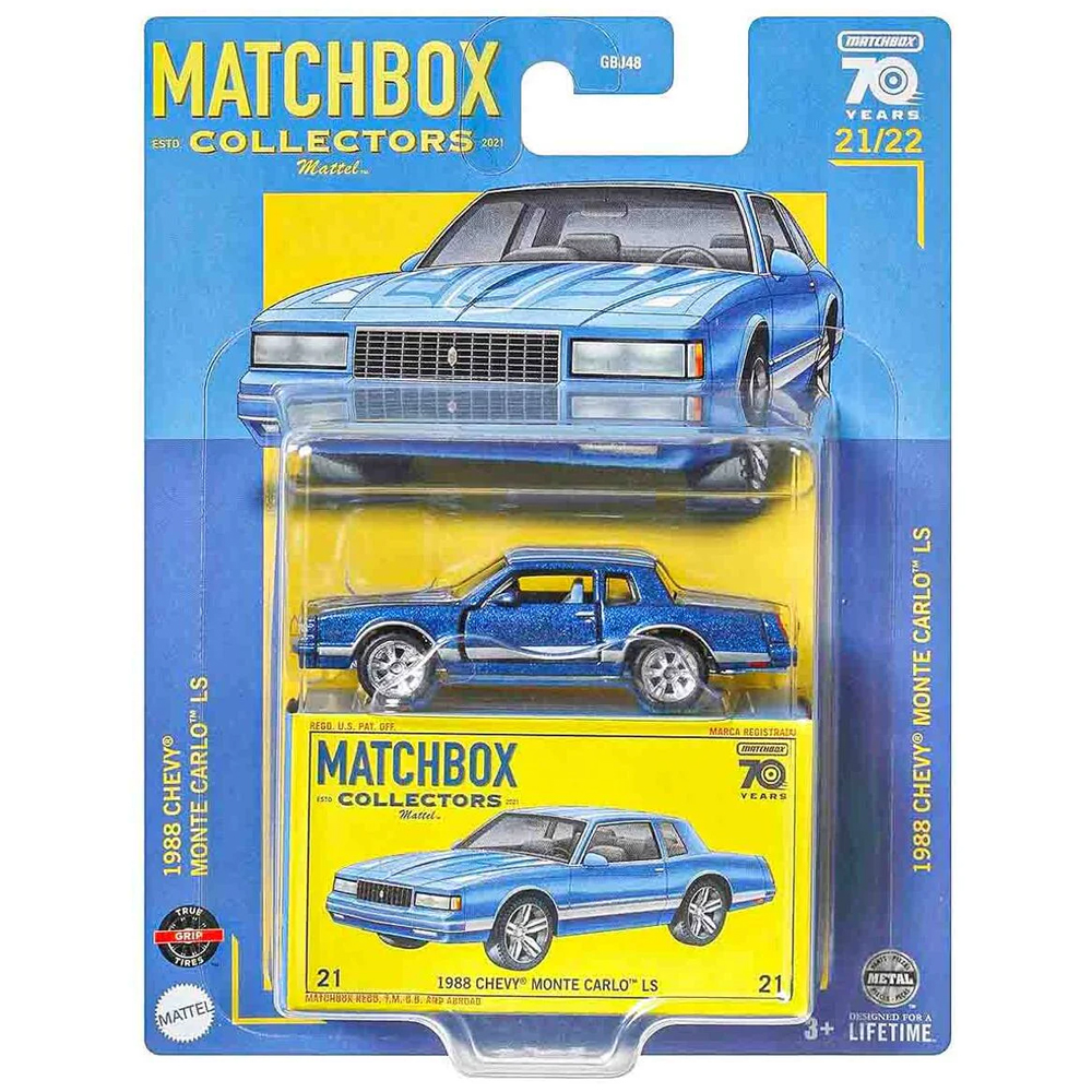 Kolekcjonerskie auto Chevy Monte Carlo LS 1988 w skali 1:64. Samochód odwzorowany przez markę Matchbox! Karoseria autka wykonana z metalu, a dodatkowym atutem dla kolekcjonerów będą otwierane drzwi pojazdu! W zestawie znajduje się kartonowe opakowanie z wizerunkiem pojazdu.