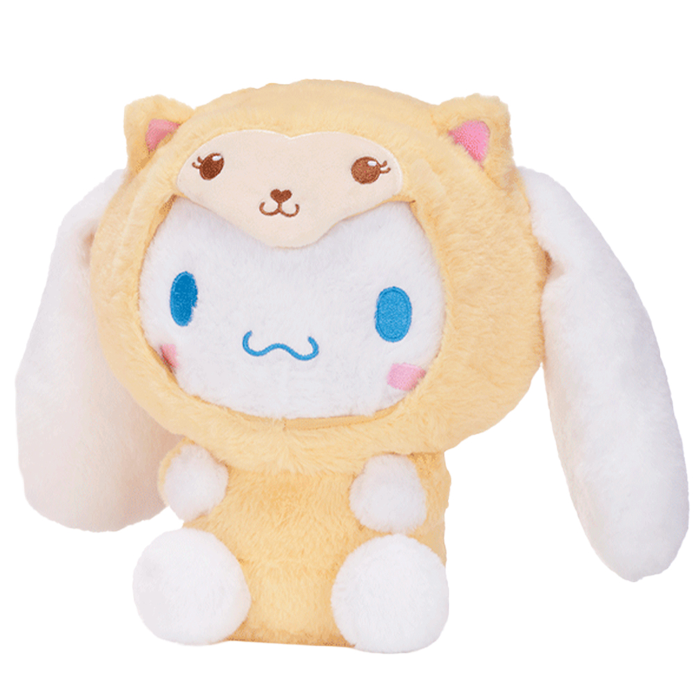 Puchata maskotka Cinnamoroll w stroju kotka (strój nie jest ściągany). Zabawka jest wykonana z bardzo miękkiego i miłego w dotyku materiału z dłuższym włosiem. Cinnamoroll ma wyszywane elementy twarzy, z tyłu ma zakręcony ogonek. Świetny pomysł na prezent dla fanki lub fana serii Hello Kitty.