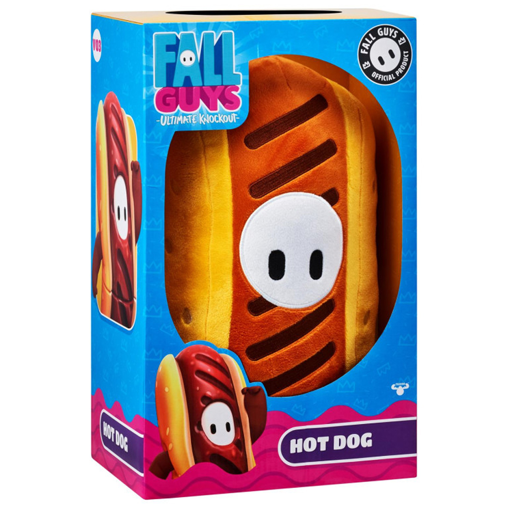 Maskotka Fall Guys Hot Dog wykonana jest z mięciutkiego, przyjemnego w dotyku pluszu i zapakowana w kartonowe opakowanie prezentowe. Pluszak Hot Dog to nie tylko zabawka, ale idealny towarzysz, który przeniesie młodych fanów gry do świata Fall Guys stawiając nowe wyzwania.