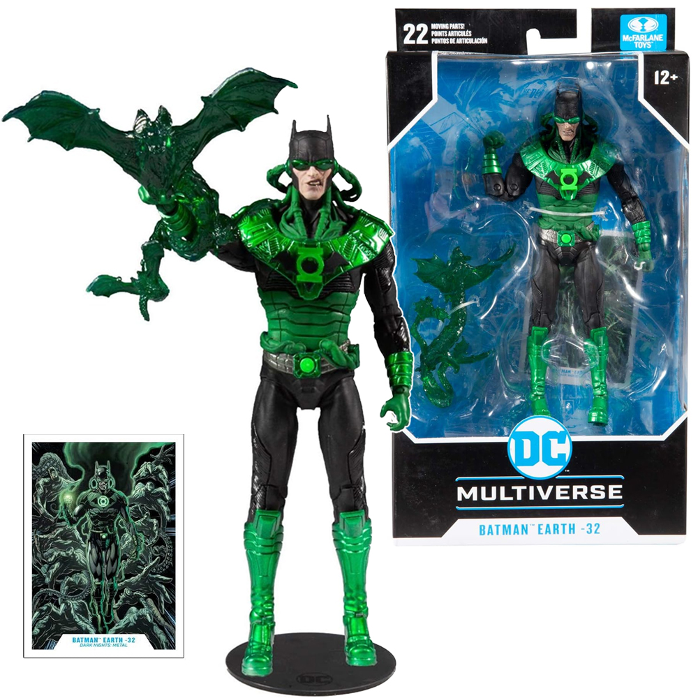 Oryginalna figurka kolekcjonerska DC Multiverse Batman Earth -32 (Dark Nights: Metal), wiernie odwzorowuje charakterystycznego bohatera, zachowując szczegóły i detale, co sprawia, że jest doskonałą reprezentacją wirtualnej postaci.