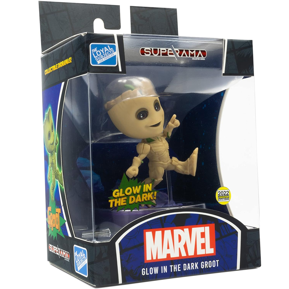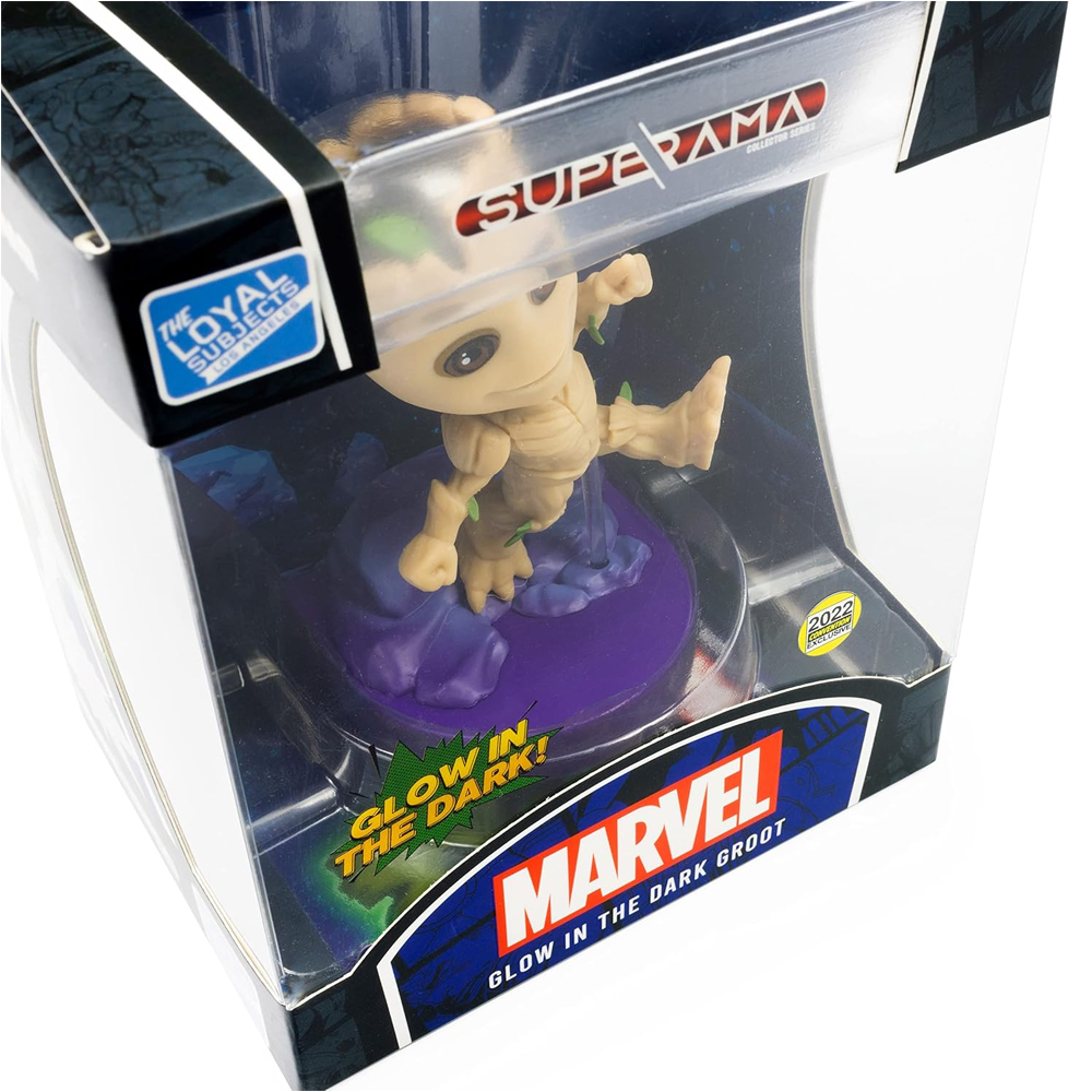 Kolekcjonerska figurka Groot Marvel Superama świecąca w ciemności! Odwzorowana z dbałością o szczegóły, oferowana na stojaku kolekcjonerskim w scenerii nocnej. Figurka wykonana z trwałego tworzywa. Zapakowana w kolorowe opakowanie, nadające się na prezent.