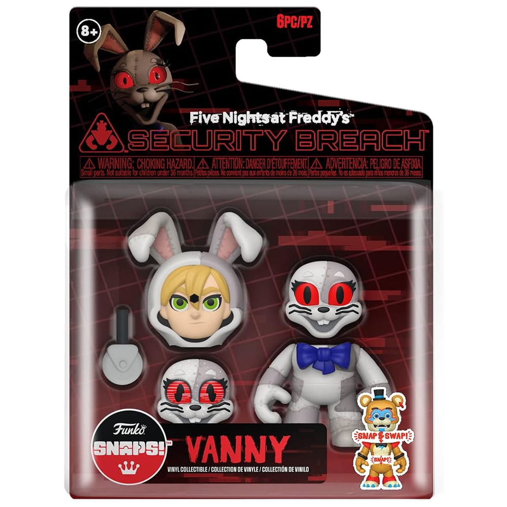 Figurka FNAF Vanny z serii Funko Snaps & Swap. SNAPS to kolekcjonerska linia figurek winylowych od Funko, z możliwością zmiany wyglądu figurki. Wymieniaj akcesoria między postaciami i twórz własne, unikalne kombinacje! Świetny pomysł na prezent jako ozdoba lub figurka kolekcjonerska dla miłośników gry Five Nights at Freddy’s. Figurka jest wykonana z winylu i zapakowana w oryginalne opakowanie.