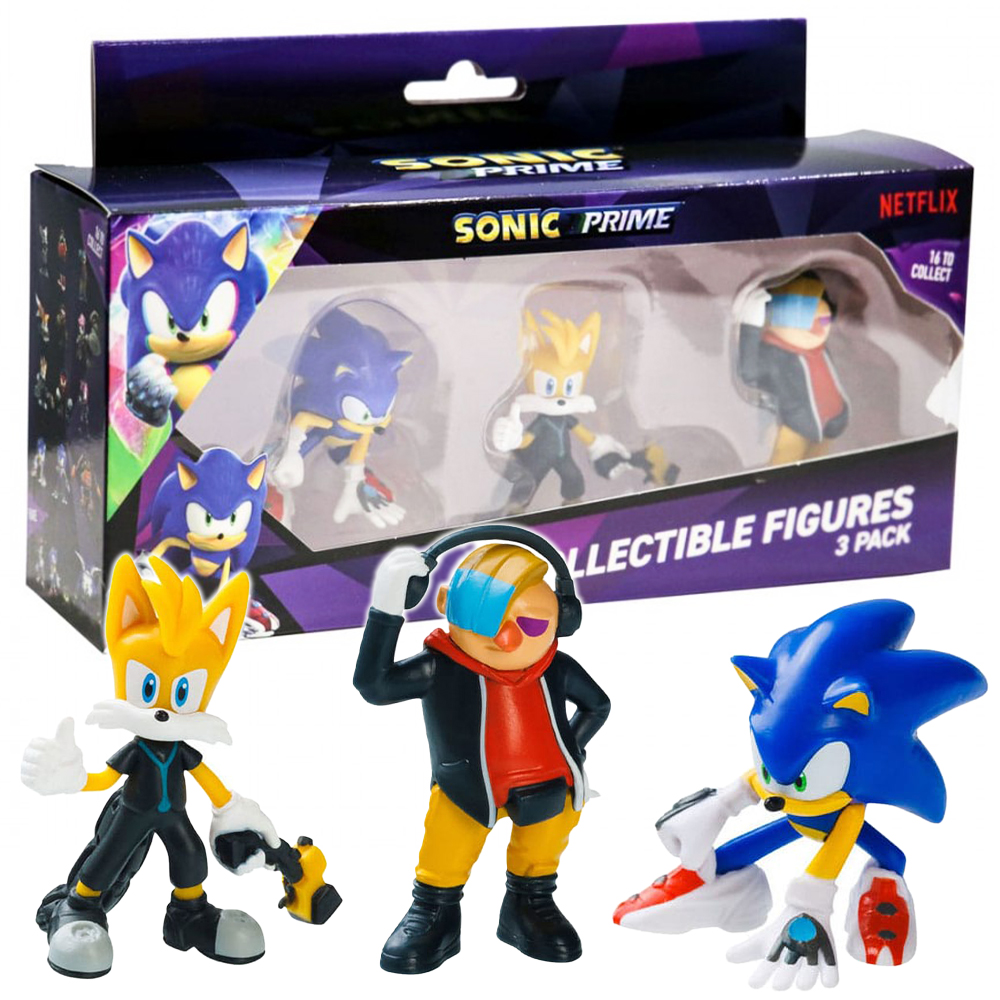 Oryginalny zestaw 3 figurek kolekcjonerskich z serialu Sonic Prime: Sonic, Tails i Doktor Don’t.