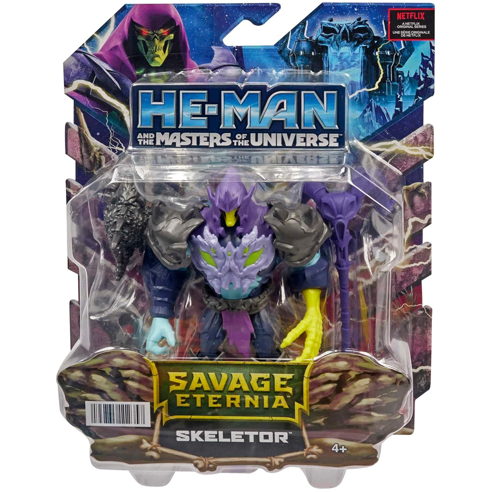 Figurka Skeletor He-Man o wysokości około 14 cm. Wzorowana jest na wizerunku głównego antagonisty serialu animowanego od Netflix – He-Man and the Masters of the Universe, który bazuje na niezapomnianej animacji z lat 80 He-Man i władcy wszechświata. Figurka została bardzo starannie odwzorowana i pomalowana, w zestawie posiada dodatkowe akcesoria i ruchome elementy. Całość umożliwia odgrywanie własnych scenek z bohaterem.