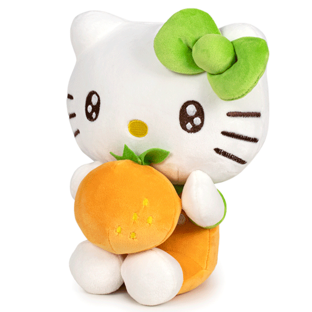 Maskotka pomarańczowa Hello Kitty jest bardzo miękka i miła w dotyku. Wykonana z najwyższą dbałością o detale, ma haftowane brązowe elementy twarzy, w łapkach trzyma pomarańczę (przyszyta do maskotki). Świetny pomysł na prezent dla fanki lub fana Hello Kitty.