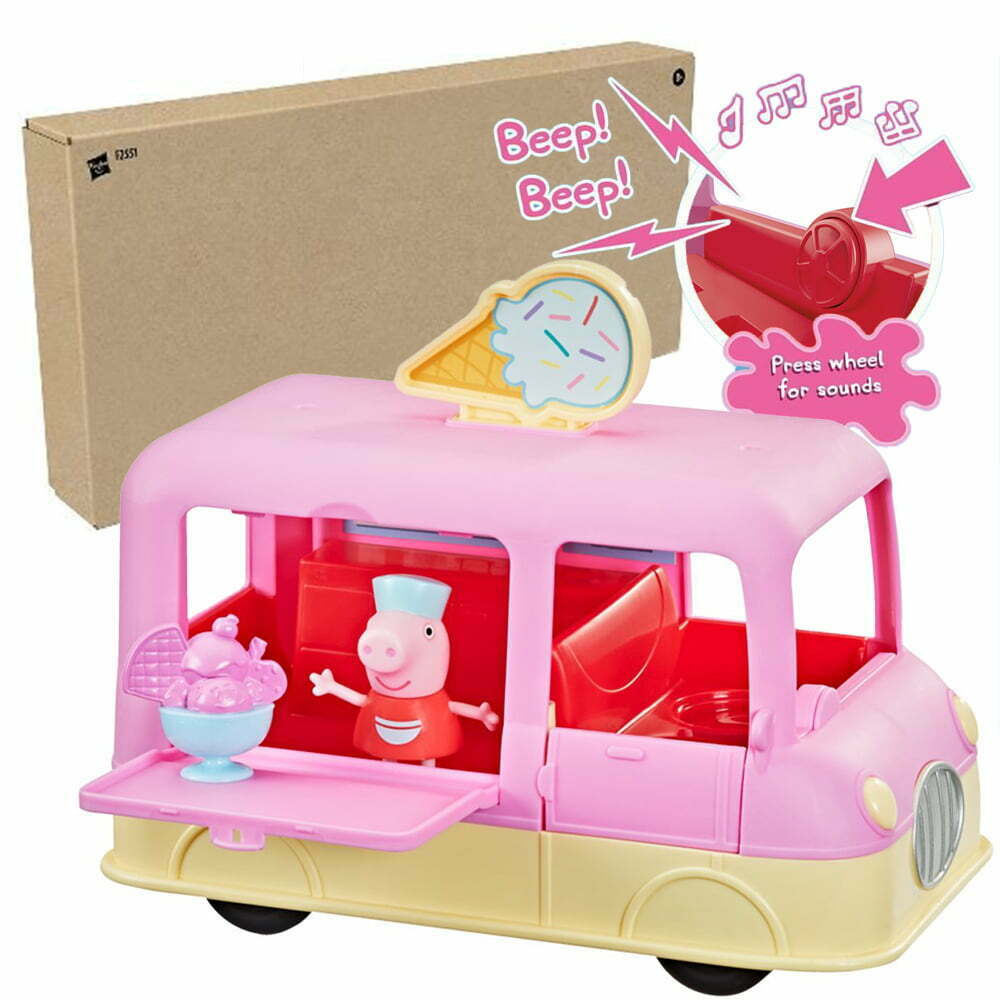 Kamper Van z Lodami w zestawie z figurką głównej bohaterki Świnki Peppy i pucharkiem lodów.