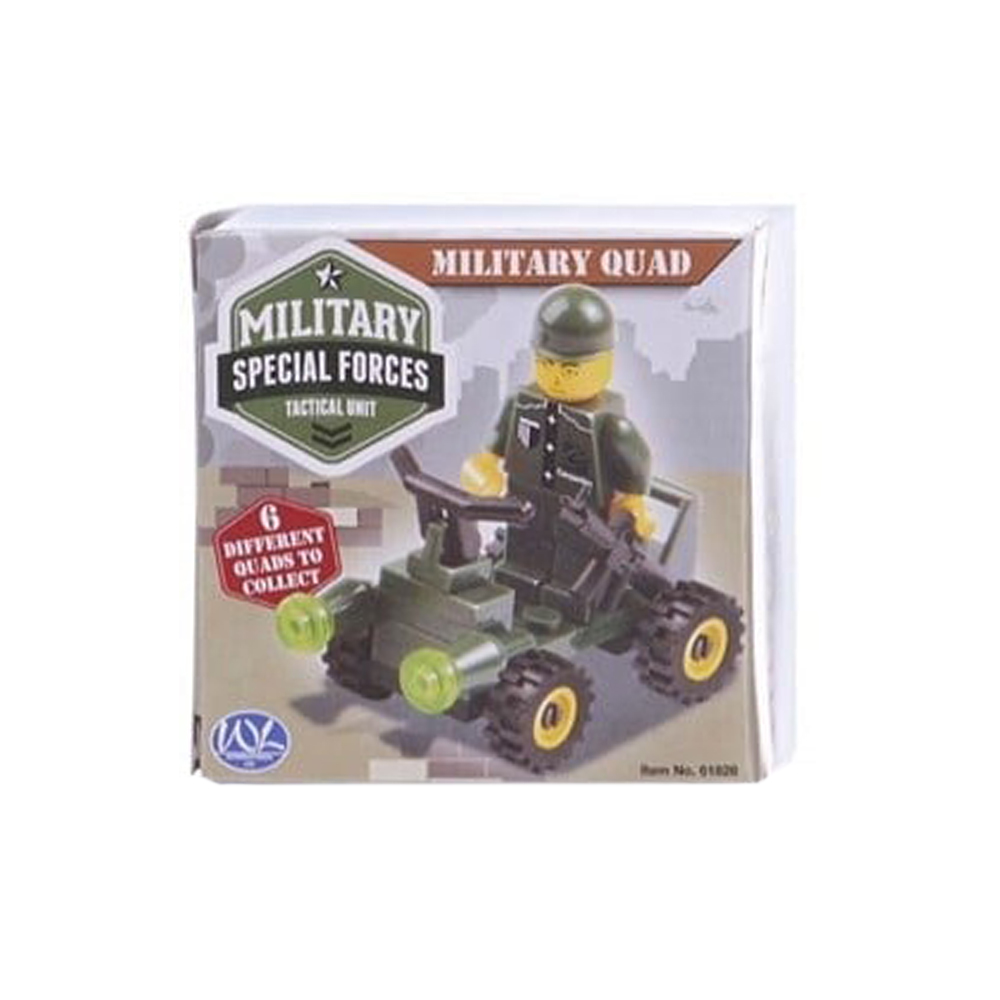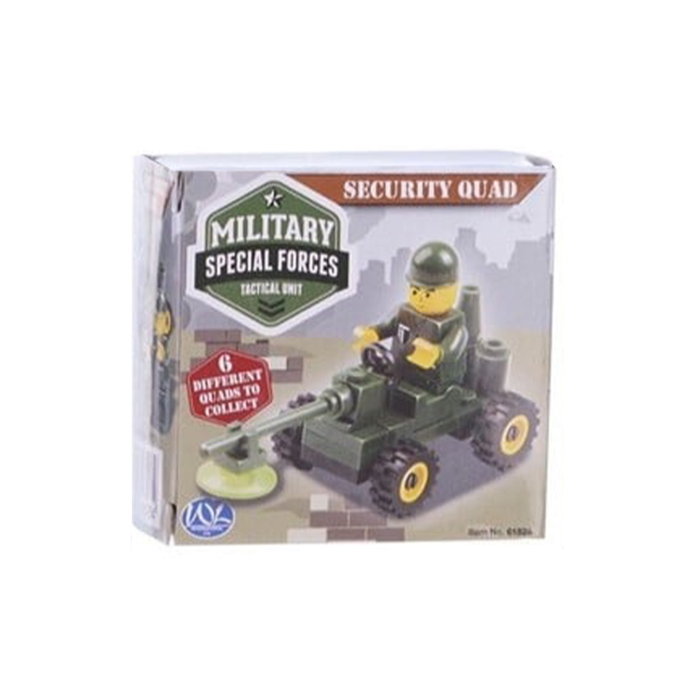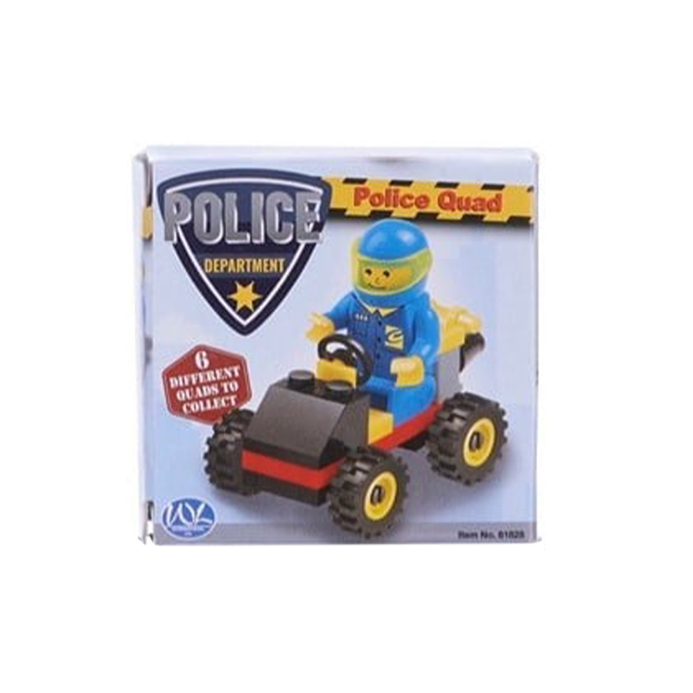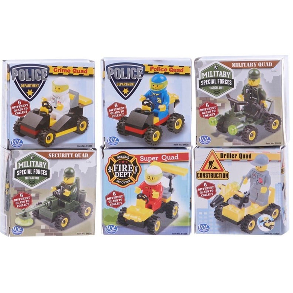 Klocki Quad + Figurka do złożenia. Wysyłka losowa. Do zebrania 6 różnych quadów: policyjny, wojskowy, ratowniczy, wiertarka budowlana, wojskowy ochronny, policyjny kryminalny.