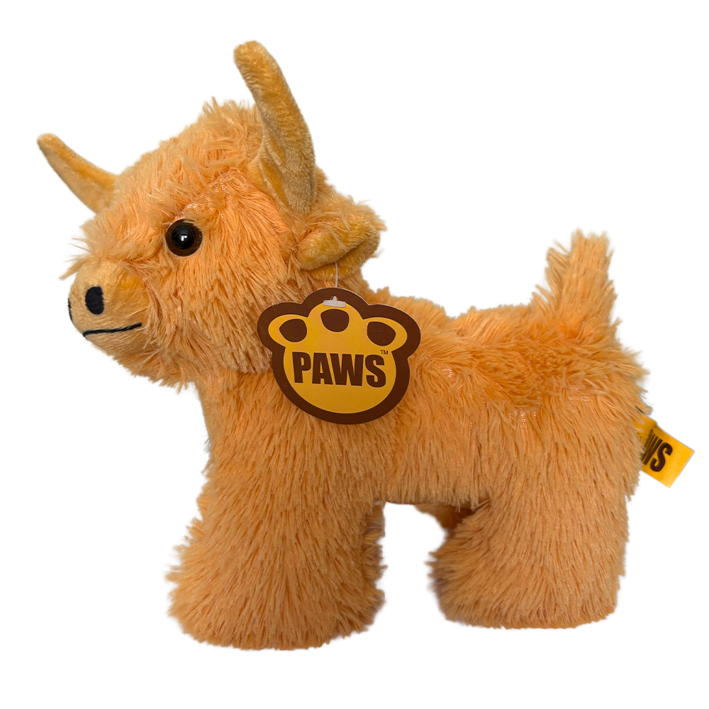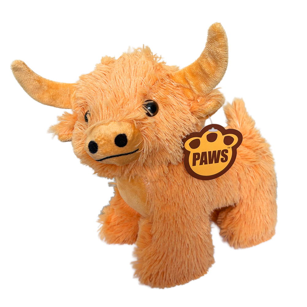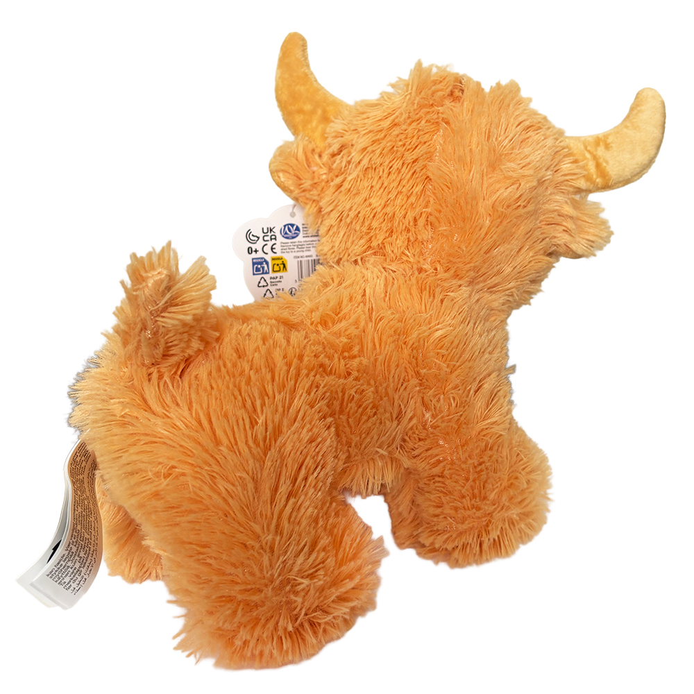 Pluszak Krowa Szkocka w kolorze jasnopomarańczowym. Materiał z długim włosiem, jest miękki i miły w dotyku. Krówka ma miękkie rogi. Zabawka dobrze wypełniona pluszem.