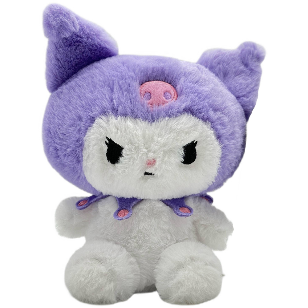Puchata maskotka pluszak Kuromi w fioletowym kolorze została odwzorowana na podstawie postaci „Hello Kitty”. Pluszak jest wykonany z bardzo miękkiego, włochatego materiału. Ma haftowane elementy twarzy. Świetny pomysł na prezent dla fanki lub fana serii Hello Kitty.