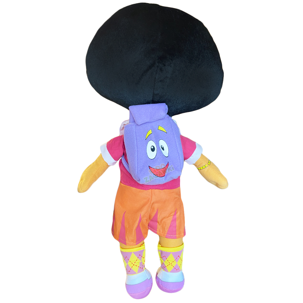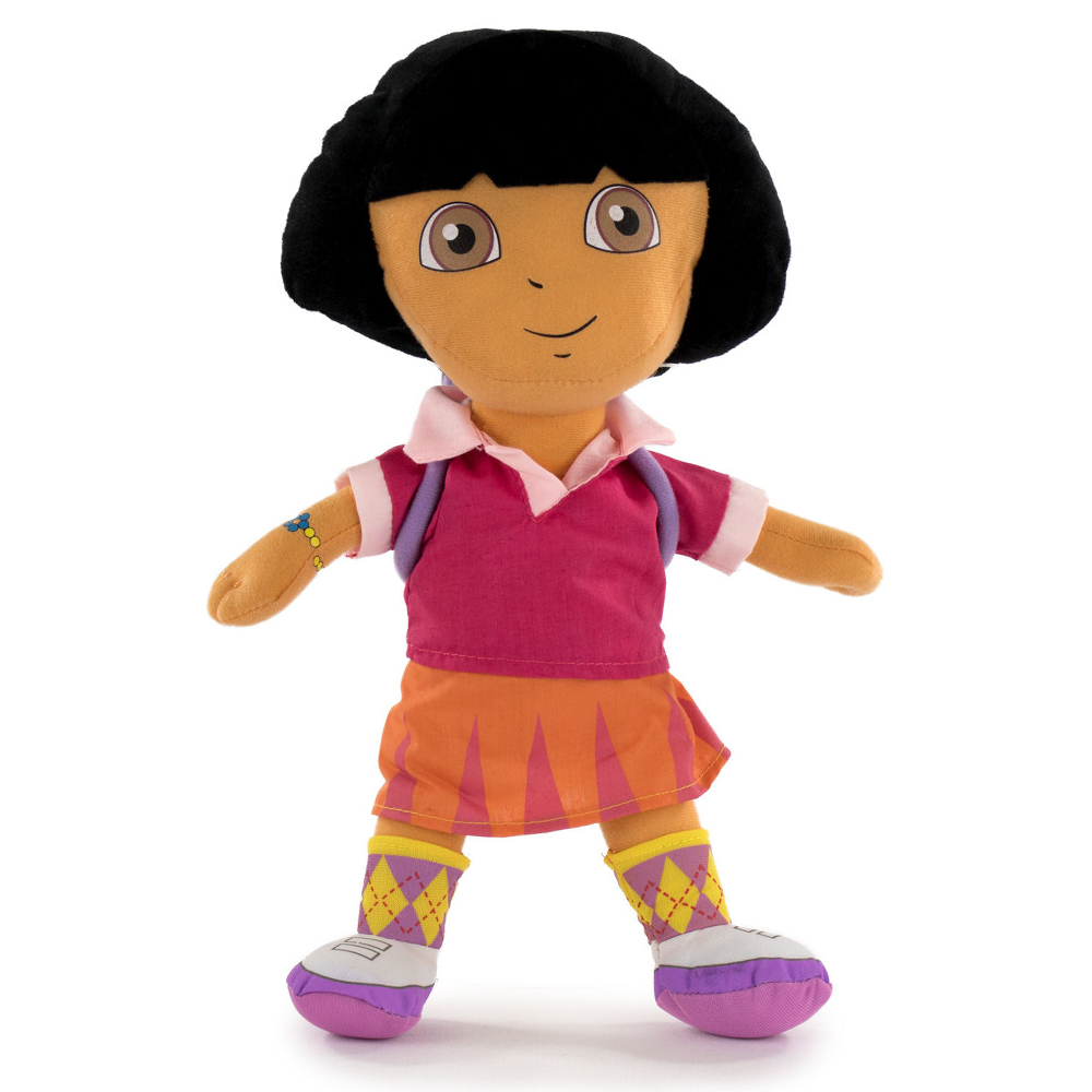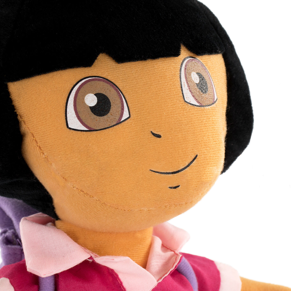 Oryginalna maskotka Dora z bajki „Dora poznaje świat„. Pluszak jest miękki, ma nadrukowane elementy twarzy. Dora ma fioletowy plecak. Maskotka nie stoi samodzielnie.