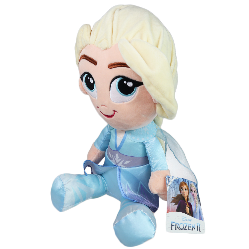 Elsa zachwyca swoim delikatnym wyglądem i szczegółowym wykonaniem. Wyszywane oczy, brwi i uśmiech nadają maskotce wyjątkowy charakter, a miękki pluszowy materiał sprawia, że jest idealna do przytulania. Uroczy blond warkocz, który rozpoznawany jest przez wszystkich fanów Krainy Lodu, dodaje Elsie charakterystycznego uroku,