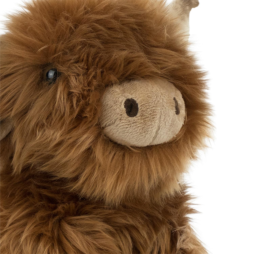Maskotka Krowa Szkocka wykonana z dbałością o szczegóły, aby świetnie odwzorować zwierzę. Materiał z dłuższym włosiem, jest bardzo miękki i miły w dotyku. Zabawka dobrze wypełniona pluszem.