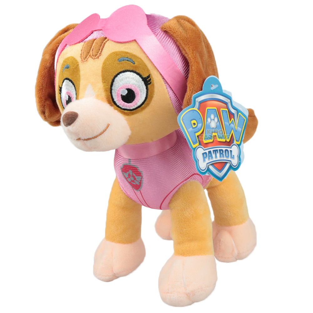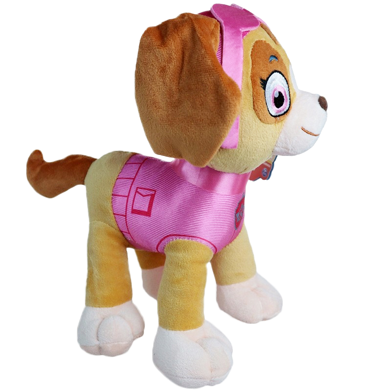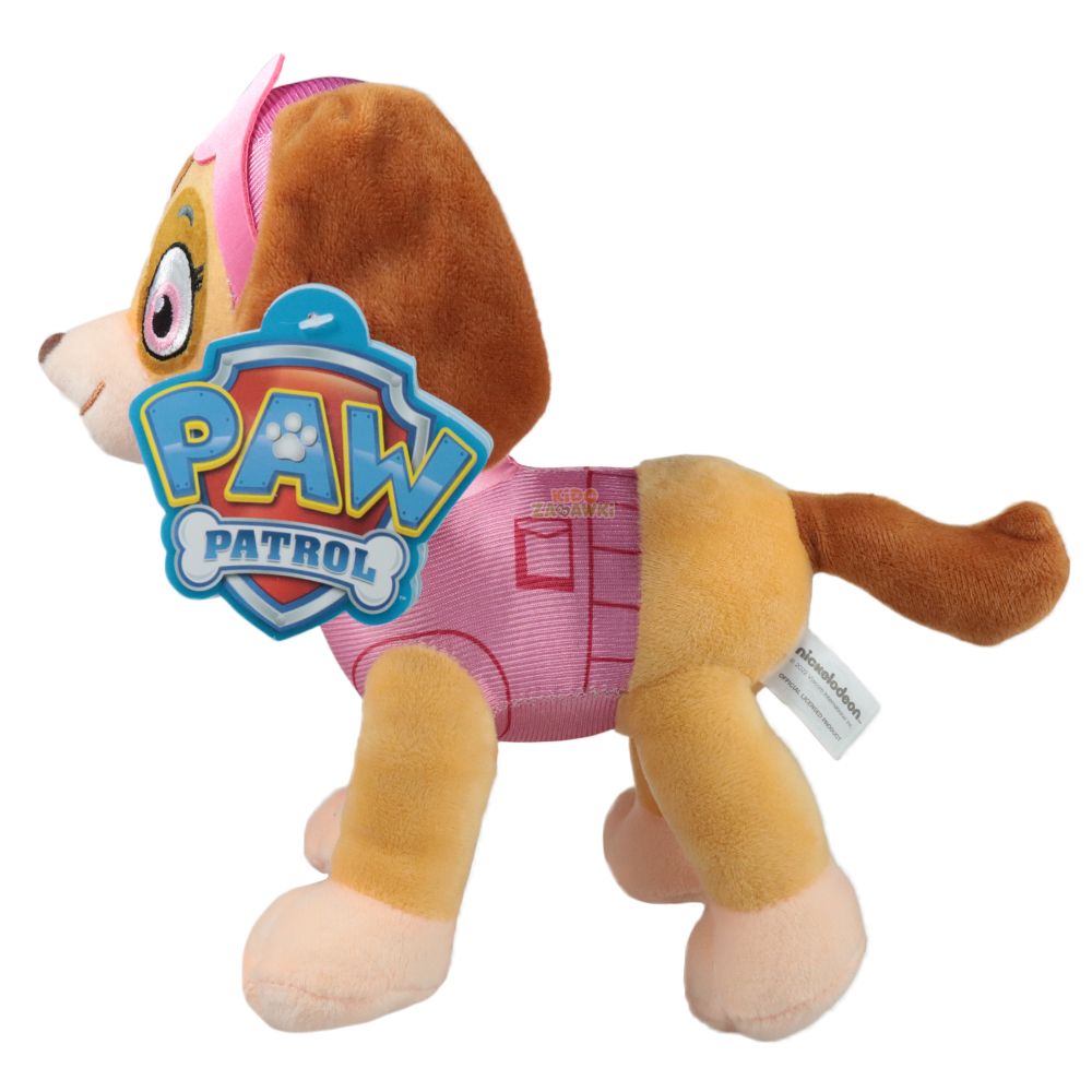Maskotka piesek Skye została odwzorowana na podstawie bohaterki z serialu animowanego „Psi Patrol„. Pluszak jest miękki i miły w dotyku, ma haftowane oczy, brwi i uśmiech. Piesek w różowym stroju, takim jak w bajce (ubranie nie jest zdejmowane). Świetny pomysł na prezent dla fanki lub fana bajki Psi Patrol / Paw Patrol.