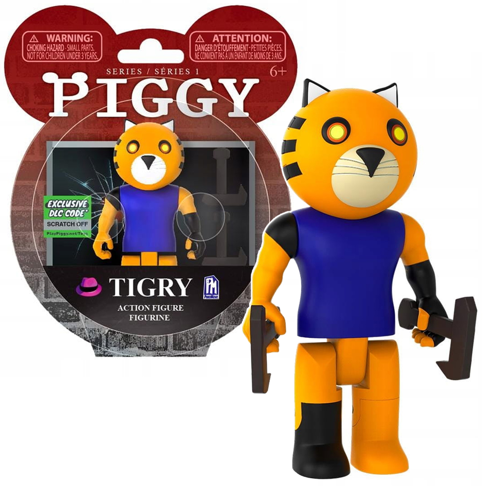 Oryginalna figurka kolekcjonerska Tigry Roblox wykonana przez PhatMojo. W zestawie posiada podwójne sztylety. PIGGY to przebojowa gra typu survival horror dla wielu graczy, stworzona przez MiniToon. Połącz siły ze znajomymi, aby uciec Piggy lub graj jako Piggy, aby polować na swoich przyjaciół i zapobiec ich ucieczce!