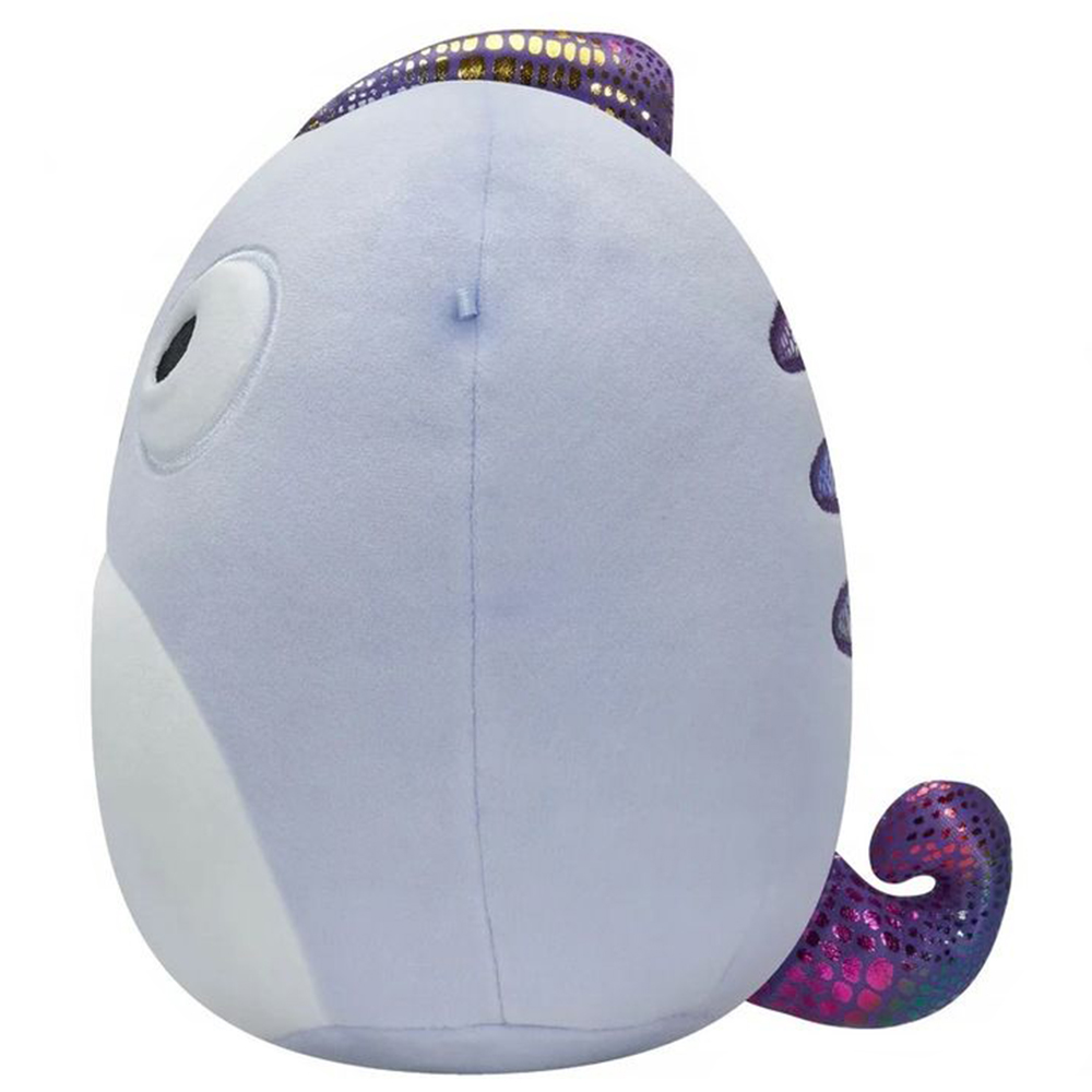 Oryginalna maskotka Squishmallows kameleon Coleen. Pluszak jest wysokiej jakości, bardzo miękki i miły w dotyku. Ma haftowane elementy i wykonany jest z miękkiego materiału. Maskotka ma błyszczące elementy na głowie, plecach i ogonek. Piankowa struktura Squishmallows sprawia, że idealnie nadaje się jako przytulanka lub poduszka do snu. Świetny pomysł na prezent dla fanki lub fana Squishmallows.