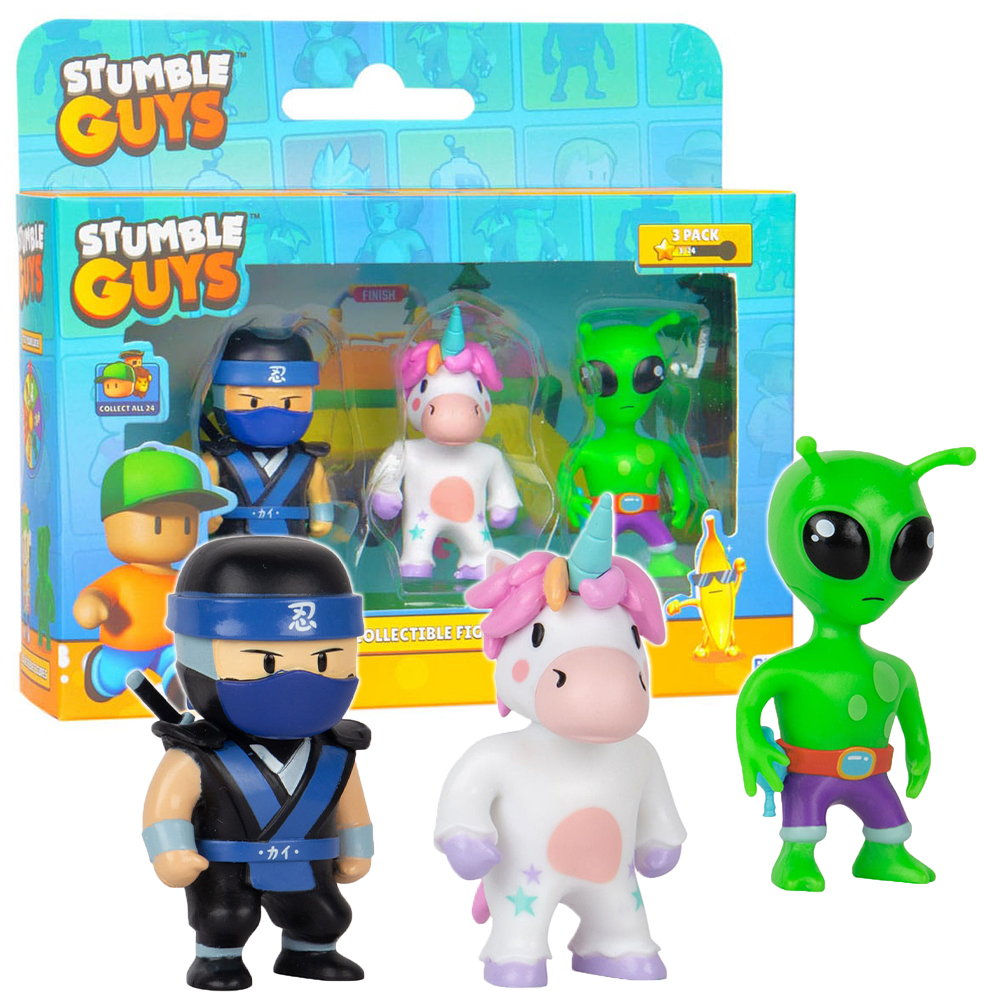 Zestaw 3 figurek – postaci z gry Stumble Guys. Figurki mają około 5 cm wysokości.