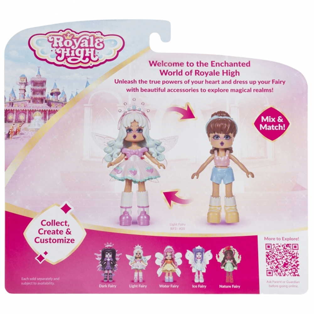 Figurka Wróżka Światła inspirowana grą Royale High, ma dziewięć akcesoriów, które można łączyć na różne sposoby – dodatkowo skrzydła wróżki, możesz założyć na swój palec jako element garderoby! W zestawie znajduje się kod na wirtualny przedmiot w grze, który pozwoli Ci dostosować Twoją wróżkę w świecie online. Zbierz pełną kolekcję figurek ze świata Royal High. Oficjalnie licencjonowany produkt.